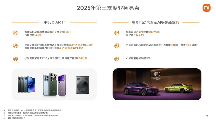 智能手机收入-3.1%,大概是这么来的:出货量同比+0.5%,基本持平;ASP(平均售价)同比-3.6%。但9月底发布小米17系列之后,感觉这个趋势应该会扭转。