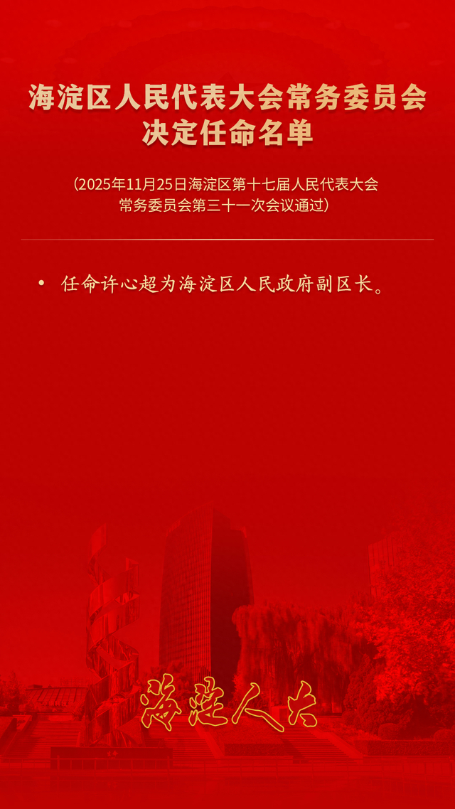 海淀区人大常委会审议决定一批人事任免事项 北京日报 《北京日报》官方账号 2025.11.2509:46 关注 转自:北京日报客户端11月25日海淀区第十七届人大常委会召开第三十一次会议审议决定有关人事任免事项