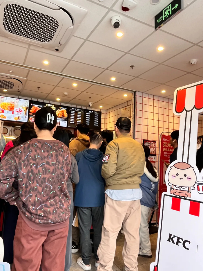 11月21日上午10点29分跳转至30分的瞬间,位于广州市天河区的一家肯德基chiikawa主题门店大堂的工作人员还在向现场的消费者表示,“活动暂未开始,等到系统更新”,然而,此刻门店后厨便传来工作人员急切的喊声:“订单来了!天啊!已经42份了。”“赶紧全都来帮忙!小腿全部下锅,可乐打100杯准备着都可以。”