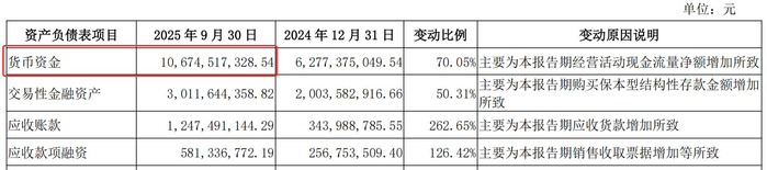 然而,高溢价收购往往伴随着资金压力。根据协议安排,云铝股份需在协议生效后10个工作日内支付80%的转让价款,即约18.13亿元。不过,每经记者注意到,云铝股份资金储备充裕。2025年三季度报告显示,截至9月30日,云铝股份的账面货币资金约为106.75亿元。
