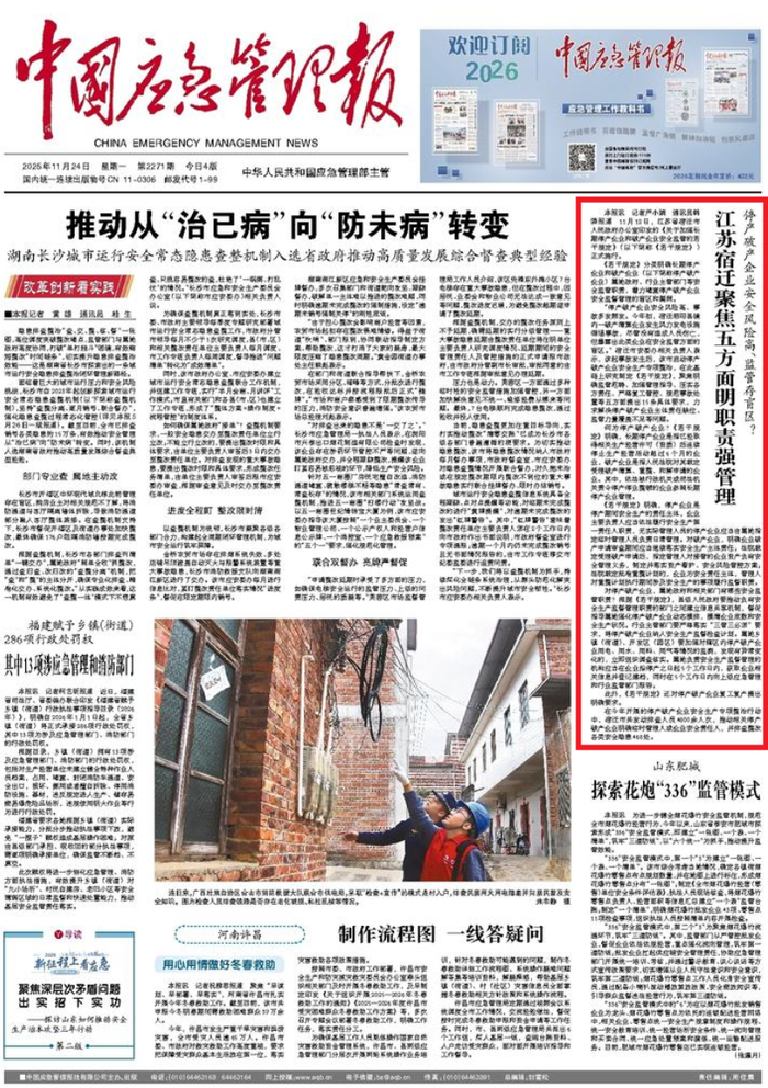 ●来源:宿迁市人民政府 中国应急管理报2025年11月24日一版 原标题《停产破产企业安全风险高、监管存盲区?江苏宿迁聚焦五方面明职责强管理》 责任编辑:周佳晨