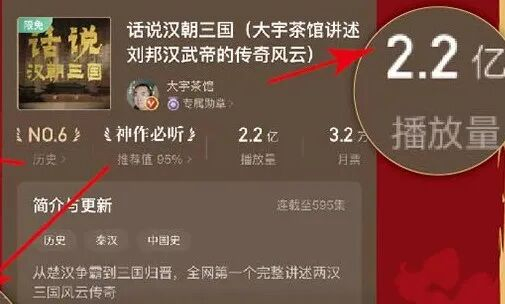在音频平台讲汉朝史,播放量破2.4亿万,长期霸历史榜,千万听众催更!