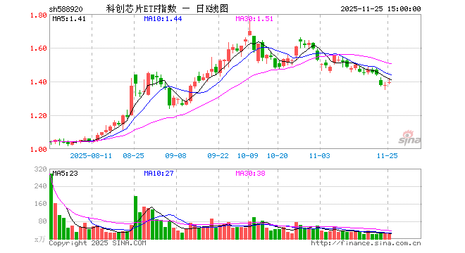 科创芯片ETF指数(588920)业绩比较基准为上证科创板芯片指数收益率,管理人为鹏华基金管理有限公司,基金经理为罗英宇,成立(2025-07-16)以来回报为39.38%,近一个月回报为-13.23%。