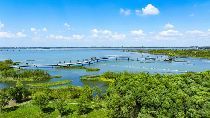 青浦依水而建、因水而兴,全市23个天然湖泊都在青浦。河长制考核断面河道水质优良率100%,Ⅱ类水比例45.7%,全市第一。淀山湖、元荡岸线、蓝色珠链贯通打造,美丽幸福河湖建设稳步推进,16个无人岛保持生态原真、促进生物多样。青浦获评全市首个国家生态文明建设示范区、首批国家水土保持示范县。