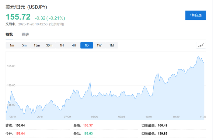 行情显示,近日日元兑美元持续走弱,已经跌至“干预”预警水平——155附近。