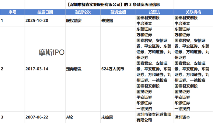 天眼查信息显示,柳鑫股份的融资历程情况如下: