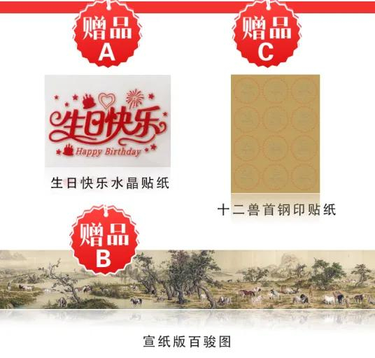 还赠送中国十大传世名画《百骏图》(印刷版),长80cm,宽30cm,印于宣纸之上。