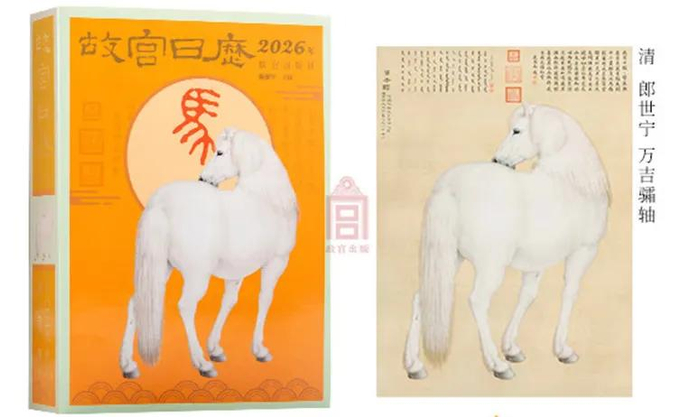 《故宫日历·2026年》封面采用清代传教士画家郎世宁绘制的乾隆帝爱驹万吉骦。