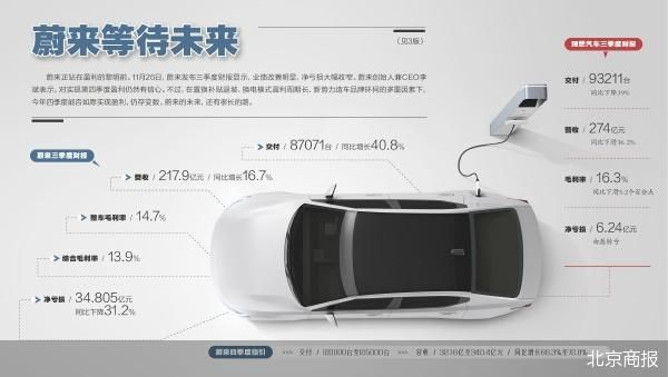 交付量方面,蔚来三季度新车交付87071辆,同比增长40.8%,环比增长20.8%,按照192亿元的汽车销售收入,单车收入约为22.05万元。