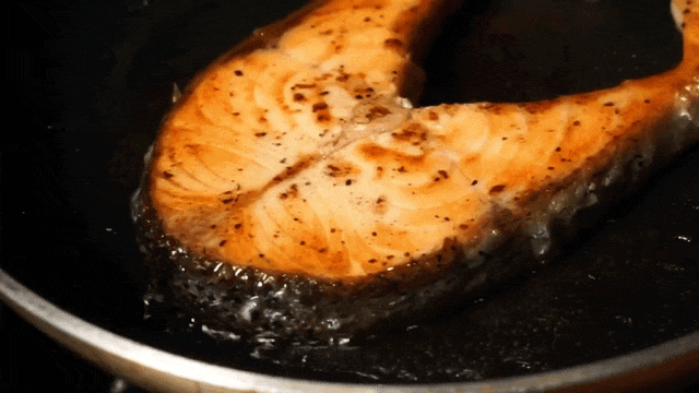 耐心翻面,看着鱼肉从透亮的橙红,逐渐染上诱人的焦糖金边。