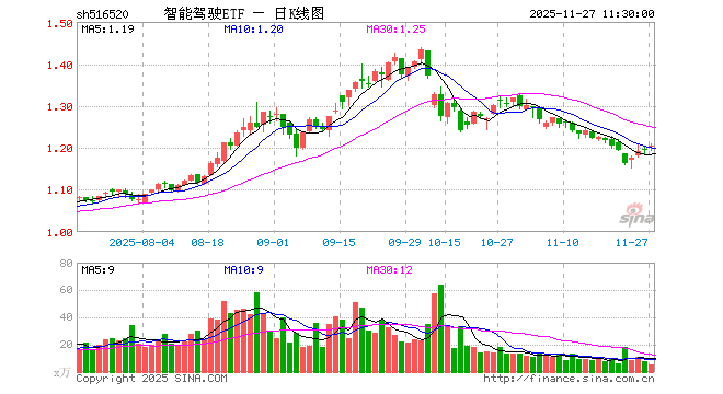 智能驾驶ETF(516520)涨0.84%,半日成交额615.71万元