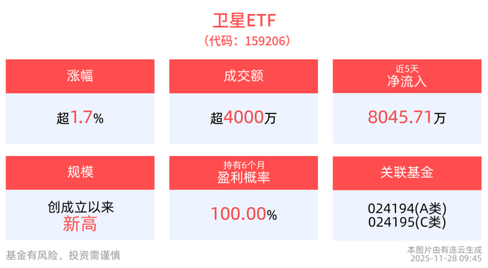 规模方面,卫星ETF最新规模达15.21亿元,创成立以来新高