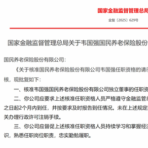 韦国强获批担任国民养老独立董事 东方网 2025.11.2909:42 关注 转自:东方资讯11月21日,国家金融监督管理总局发布关于韦国强国民养老保险股份有限公司独立董事任职资格的批复,核准韦国强国民养老保险股份有限公司独立董事的任职资格。