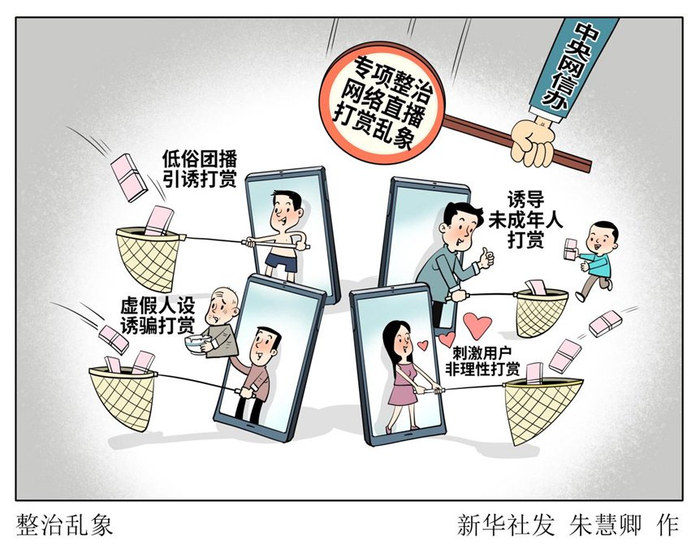 为了猎奇吸睛、博人眼球,无底线地展示带有性暗示的动作、使用令人不适的低俗互动和玩法,不仅玷污直播风气,污染网络生态,更违背社会公序良俗,必须从源头上加强治理。