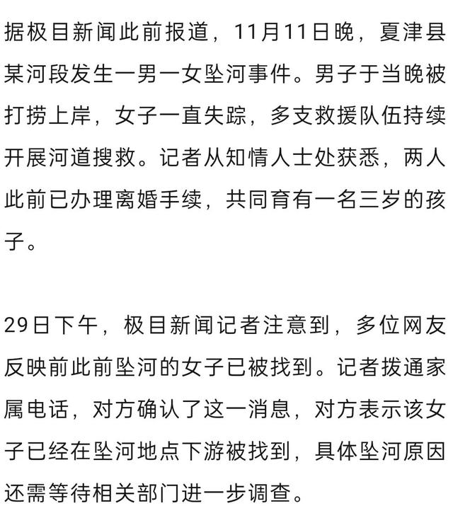 离异夫妻夜晚相继坠河,男子溺亡,女子失联18天后遗体被找到