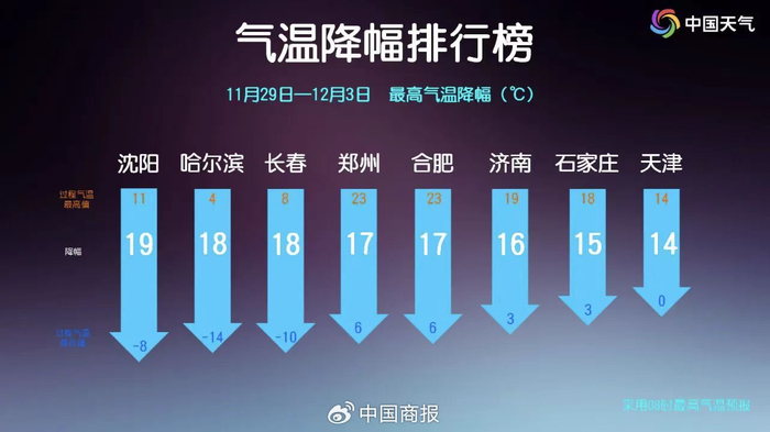 随着新一波寒潮来袭,我国自北向南将逐渐迎来降温。江南东部及以北地区日平均最低气温普遍下降6—10℃,内蒙古、华北、东北、黄淮等地下降10—14℃,局地降温可达16℃左右。