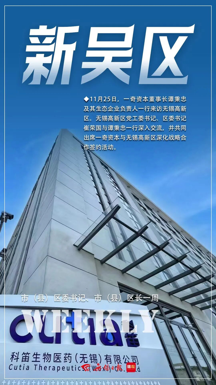 11月25日,一奇资本董事长谭秉忠及其生态企业负责人一行来访无锡高新区。无锡高新区党工委书记、区委书记崔荣国与谭秉忠一行深入交流,并共同出席一奇资本与无锡高新区深化战略合作签约活动,一奇资本在无锡高新区新设立的总额5000万美元的QFLP基金正式落地。