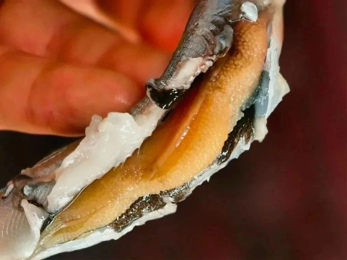 含母率高达百分之九十以上,剖开鱼身,满腹鱼籽: