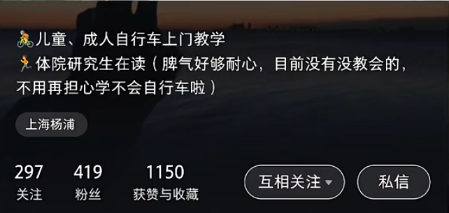 最近,在社交平台上,一项听起来有点小众的上门服务火了——上门教骑自行车。