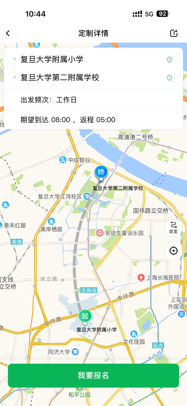 目前热度排名第一的众筹线路,同样也是由杨浦区居民发起,是一条从文化佳园小区往返于国权路地铁站的线路。定制详情页面显示,市民希望每天早晨7时30分至上午10时30分期间开出运营。