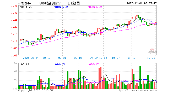 800现金流ETF(563990)开盘涨0.74%,重仓股中国海油涨0.72%,美的集团跌0.08%