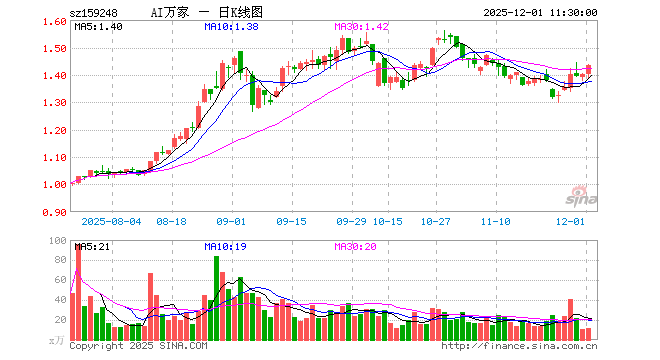 12月1日,截止午间收盘,人工智能ETF基金(159248)涨2.36%,报1.434元,成交额1648.65万元。人工智能ETF基金(159248)重仓股方面,新易盛截止午盘涨2.43%,中际旭创涨5.47%,寒武纪涨3.33%,澜起科技涨1.28%,中科曙光涨2.32%,科大讯飞涨1.39%,豪威集团涨0.85%,海康威视涨1.20%,浪潮信息涨1.41%,金山办公涨1.11%。