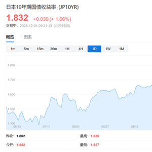 日本股债双杀!央行行长强烈暗示12月加息:希望将利率提高至0.75%再谈以后
