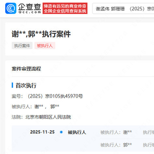 12月1日,据封面新闻报道,企查查APP显示,近日,谢孟伟(嘎子哥)、郭珊珊(谢孟伟妻子)新增一则被执行人信息,执行标的约797.75万元,执行法院为北京市朝阳区人民法院。