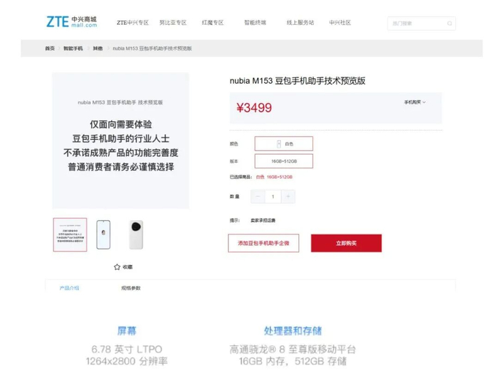 与此同时,中兴通讯旗下手机品牌努比亚也对外宣布:目前,搭载豆包手机助手技术预览版的工程样机努比亚M153少量发售,供开发者和感兴趣的朋友体验豆包手机助手。