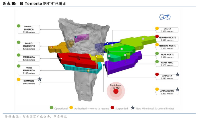 事故:2025年7月31日,EI Teniente铜矿Andesita项目因地震发生塌陷,造成6名矿工人遇难、EI Teniente铜矿整体暂停作业。