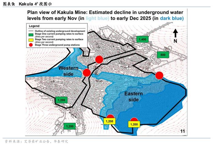 公司复产预期(截至2025-11-18):1)未受影响的Big Gossan and Deep MLZ 已在10月复产;2)GBC中的PB2、PB3计划于2026Q2复产;3)GBC中的PB1S计划于2027年年中复产。4)事故区域PB1C可能在2027年复产。