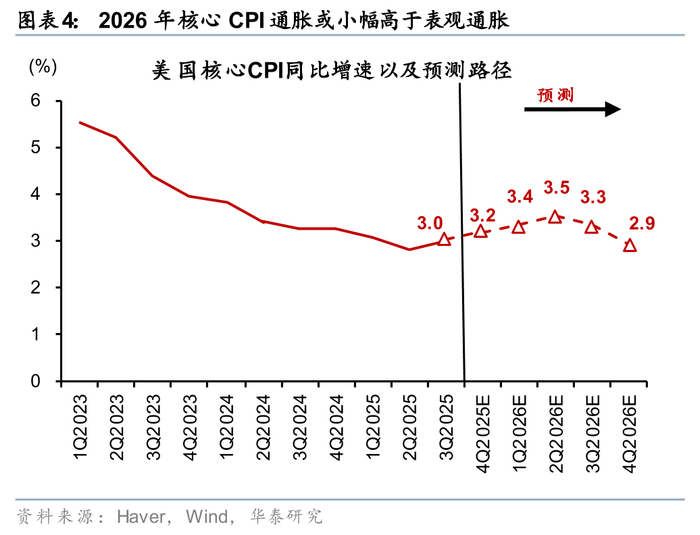 服务通胀回升:经济修复带动就业市场企稳(2026年底失业率4.3%),住房外服务通胀或温和升温。