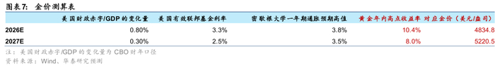 价格预期方面,我们使用华泰金属《波涌回调藏富路,且将机遇入囊中》(25-06-03)报告中的定价模型,并对其参数进行调整,其中美国财政预算赤字率变化量根据华泰宏观《不均衡的经济“再加速”——2026美国宏观展望》(25-11-02)上调至0.8%,26年美国有效联邦基金利率根据CME上调至3.0%,通胀预期假设不变,最终预期26年金价或突破4800美金/盎司。