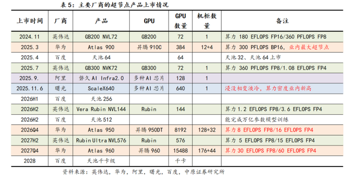 考虑到国产芯片在制程上暂时落后,通过系统层面进行高密度集成可以较好地弥补芯片端的不足。国产厂商通过在超节点方面发力,以规模化设计实现了整体算力的跃升。