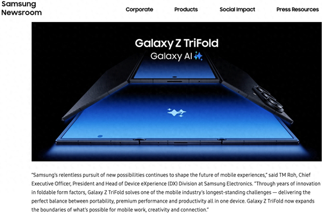 三星推出三折叠手机Galaxy Z TriFold,12月12日韩国开售