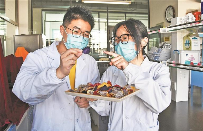 团队研发生产彩色薯片。