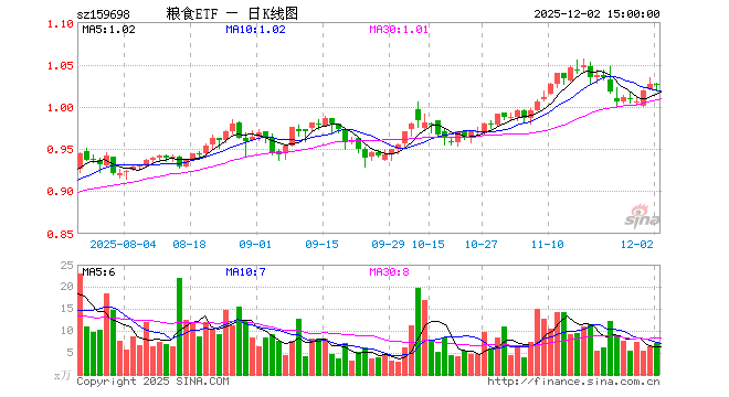 12月2日粮食ETF(159698)份额增加150.00万份,最新份额1.38亿份,最新规模1.42亿元