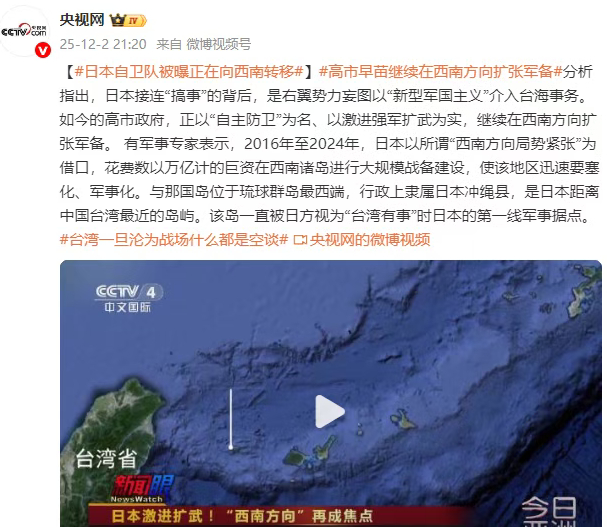 如今的高市政府,正以“自主防卫”为名、以激进强军扩武为实,继续在西南方向扩张军备。