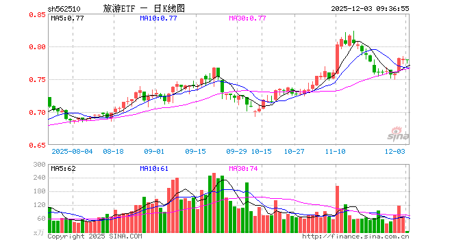 12月3日,旅游ETF(562510)开盘跌0.13%,报0.780元。旅游ETF(562510)重仓股方面,中国中免开盘跌0.50%,上海机场涨0.03%,中国东航涨0.00%,宋城演艺涨0.25%,南方航空跌0.14%,中国国航跌0.36%,华侨城A涨0.37%,锦江酒店涨0.15%,春秋航空涨0.16%,首旅酒店跌0.38%。