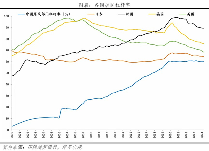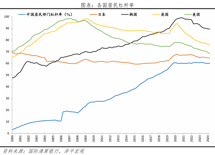 我国居民部门杠杆率从2006年的10%上升至2024年的60%。