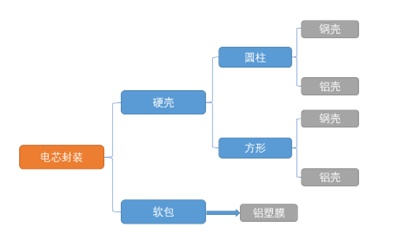 根据外壳的不同,锂离子电池电芯的封装主要分为硬壳和软包两大类,硬壳封装的材料主要为钢壳和铝壳,根据其内部正负极的排列方式不同,又分为圆柱形和方形,而软包封装则主要采用铝塑膜,随着封装技术及工艺的不断进步,圆柱形、方形、软包三种封装方式逐渐形成三足鼎立的格局。