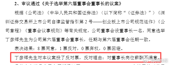 上市公司董事长反对自己连任!理由是“对薪酬不满意”