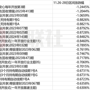 财联社查询Wind数据注意到,11月26日至28日期间,近7000只公布净值的固收类理财产品(分份额)下跌,部分产品净值回调明显。跌幅靠前的20只产品如下: