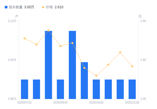 12月3日消息,数据显示,截至2025年11月28日,兴源环境A股股东总户数为3万户,较上期(2025年11月20日)不变。公司最新A股总股本为15.54亿股,其中流通A股15.53亿股,户均持有流通A股数量为5.18万股,较上期不变;户均持流通A股市值13.51万元,较上期减少4658.63元,降幅3.33%。