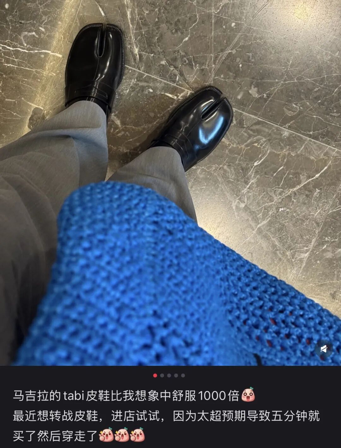 最近,马吉拉的tabi鞋在社交媒体火了。