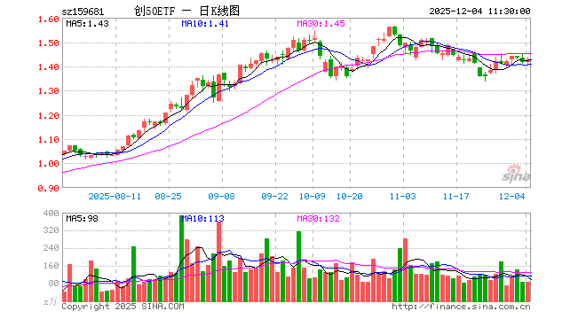 12月4日,截止午间收盘,创50ETF(159681)涨0.85%,报1.428元,成交额1.24亿元。创50ETF(159681)重仓股方面,宁德时代截止午盘涨1.69%,中际旭创涨0.72%,东方财富涨0.94%,新易盛跌0.95%,阳光电源跌0.40%,胜宏科技涨1.75%,汇川技术涨4.03%,迈瑞医疗涨0.64%,亿纬锂能跌0.33%,同花顺涨0.38%。