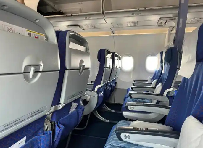 座位选无可选,好不容易选到的又快薄如刀片,还没坐10分钟就觉得屁股疼,以为是自己近期减肥效果甚佳,一低头才发现,飞机的座位已经差了高铁十万八千里。