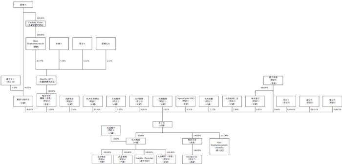 翰思艾泰最新股权结构如下,贝达药业持股5.45%,龙磐资本持股12.43%,金斯瑞持股1.53%。