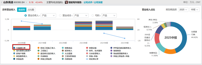 2025年前三季度,山东高速营业收入同比下滑15.38%,部分核心路段受分流影响收入显著下降。公司呈现“营收降、利润增”态势的核心原因,在于非经常性收益的支撑——过去12个月内,山东高速通过关联交易实现资产处置收益累计超30亿元。本次清仓粤高速A预计贡献投资收益8.02亿元,为前三季度净利润的30.6%。