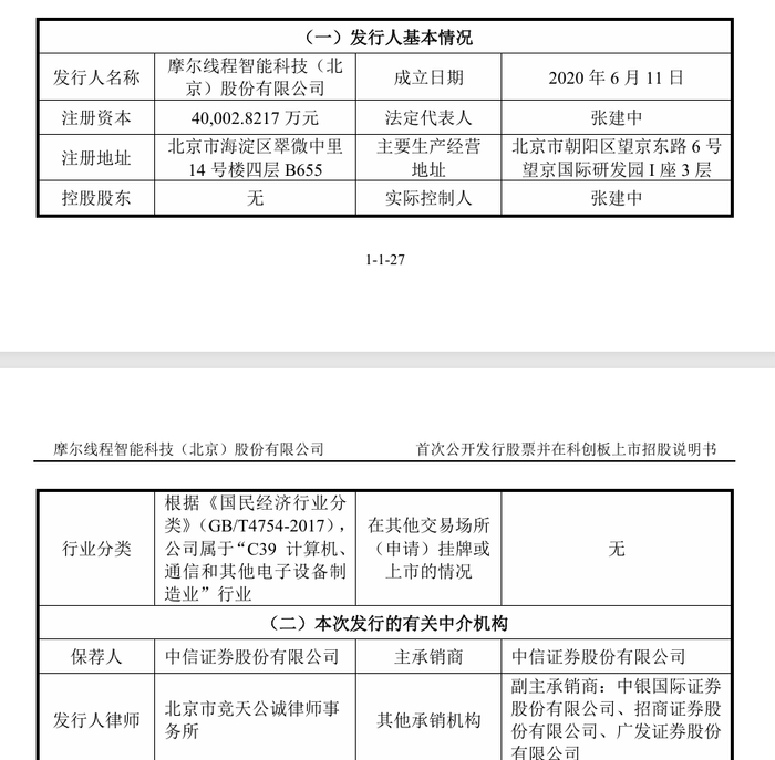 摩尔线程智能科技(北京)股份有限公司首次公开发行股票并在科创板上市招股说明书